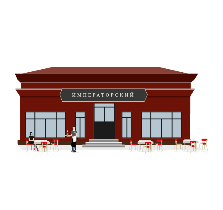 Мария: — Где вы́ход? Там рестора́н, там туале́т, там кафе́… Мо́жет быть, вы́ход там, спра́ва? Нет, нет, извини́, вы́ход сле́ва, вон там.
